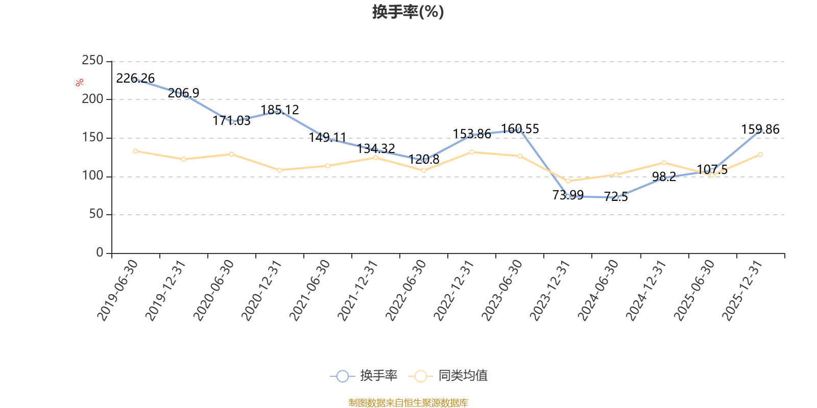 截至2025年12月31日,基金最近一年换手率约264.98%,持续1年高于同类均值。