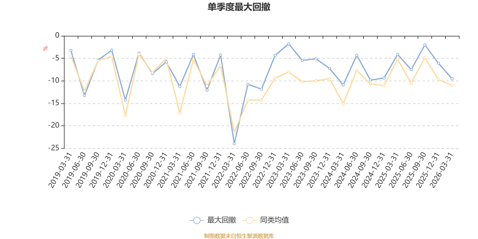 截至4月10日,基金近三年最大回撤为20.99%,同类可比基金排名11/57。单季度最大回撤出现在2022年一季度,为23.98%。