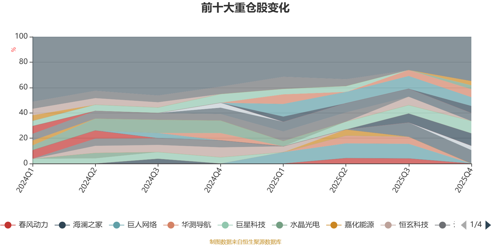 截至2025年末,基金十大重仓股分别是科沃斯、九号公司、海大集团、美的集团、贵州茅台、国光股份、豪迈科技、宁德时代、立讯精密、奕瑞科技。