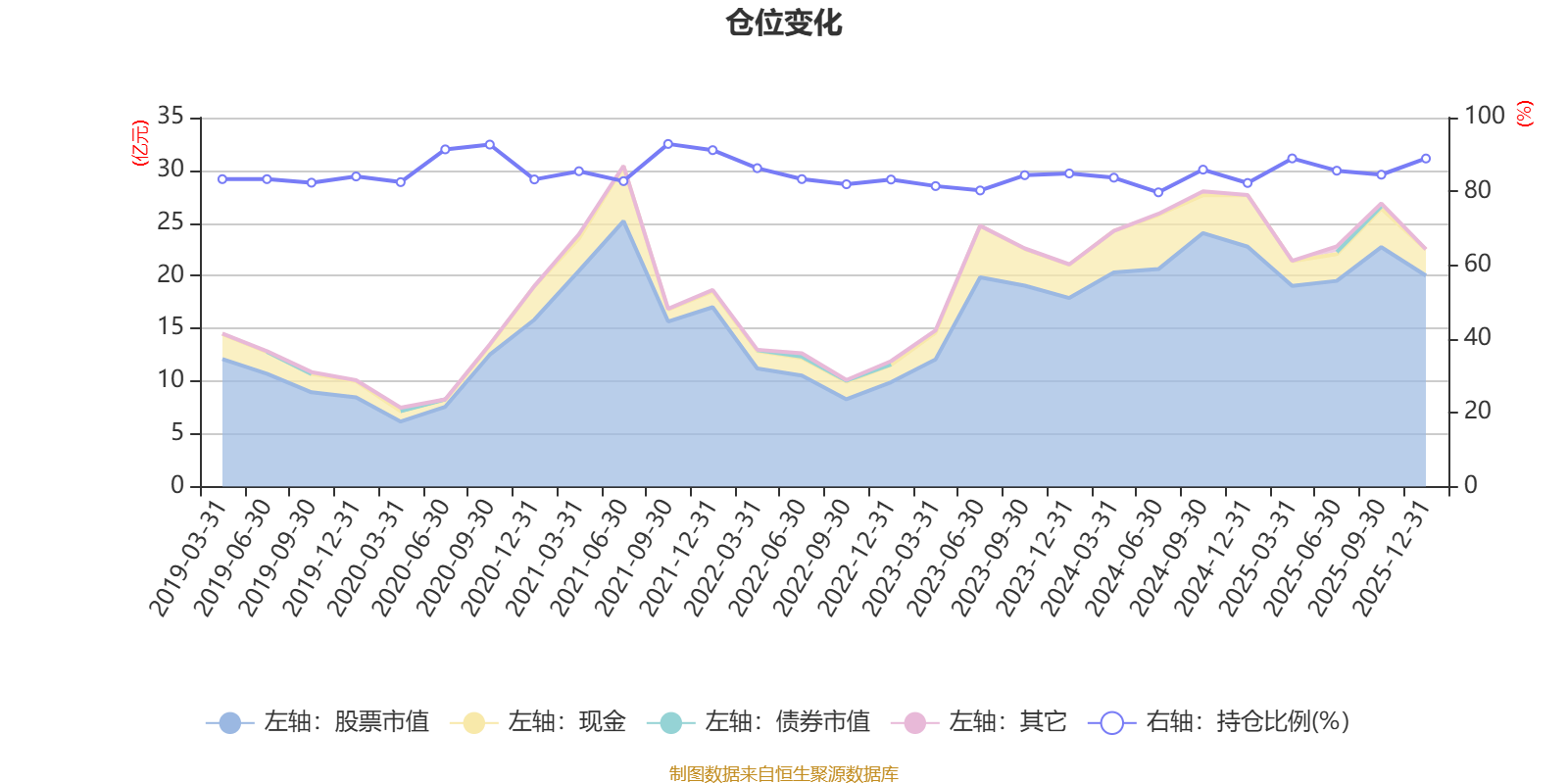 据定期报告数据统计,近三年平均股票仓位为84.22%,同类平均为88.64%。2021年三季度末基金达到92.86%的最高仓位,2024年上半年末最低,为79.74%。
