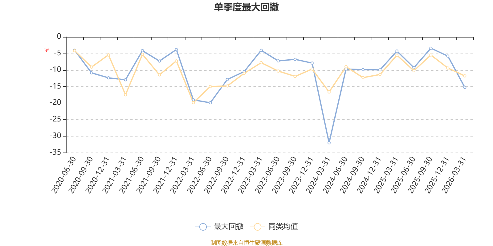 截至4月10日,基金近三年最大回撤为32.72%,同类可比基金排名44/86。单季度最大回撤出现在2024年一季度,为32.02%。