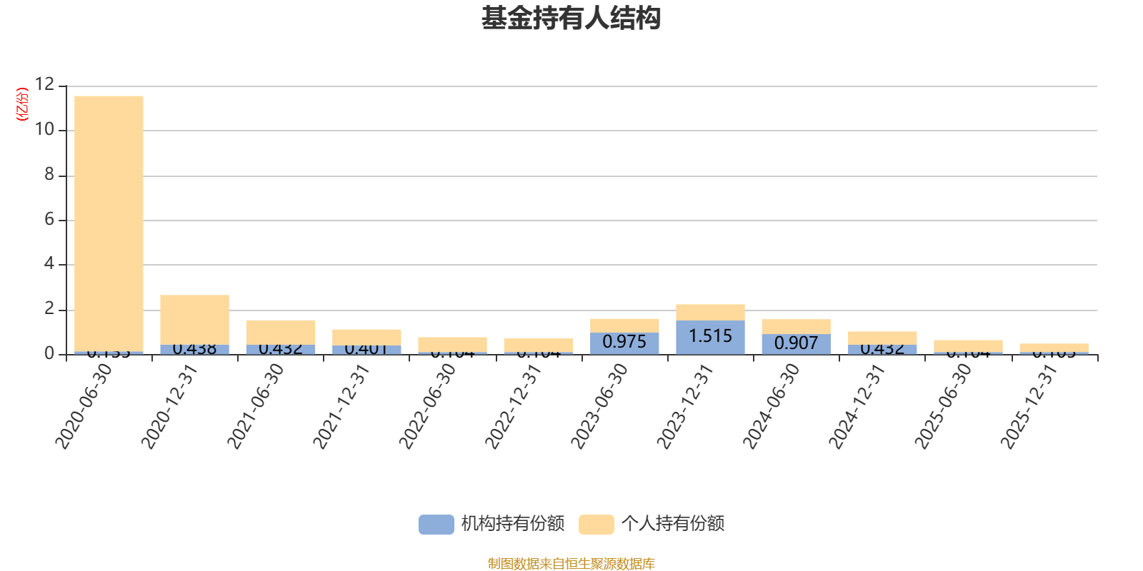 截至2025年12月31日,基金持有人共计3557户,合计持有4839.85万份。其中管理人员工持有42.3万份,占比0.87%,机构持有份额占比21.68%,个人投资者占比78.32%。