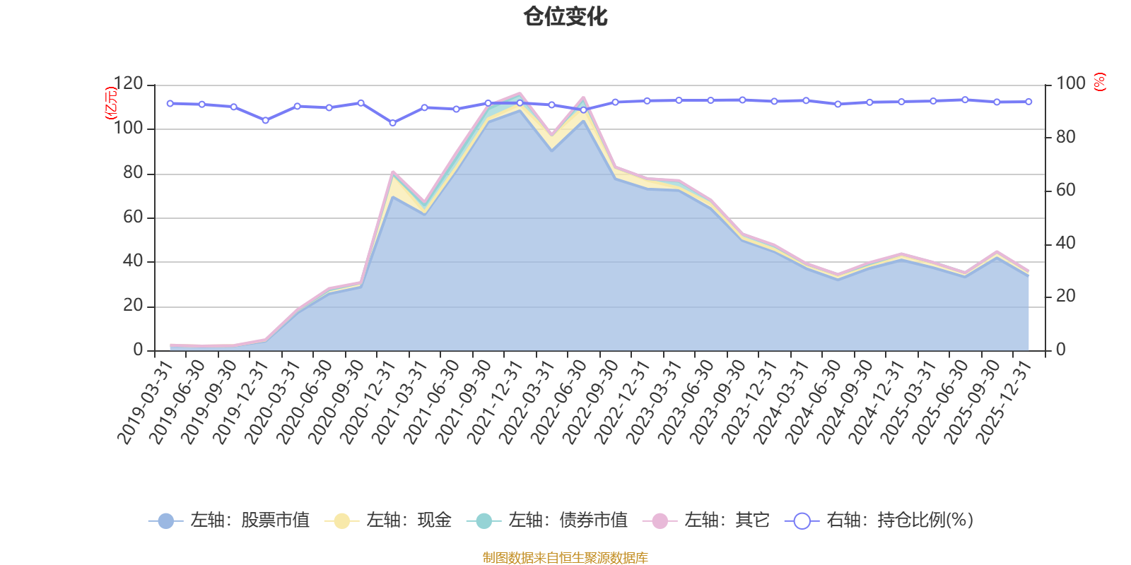据定期报告数据统计,近三年平均股票仓位为93.8%,同类平均为87.73%。2025年上半年末基金达到94.38%的最高仓位,2020年末最低,为85.66%。