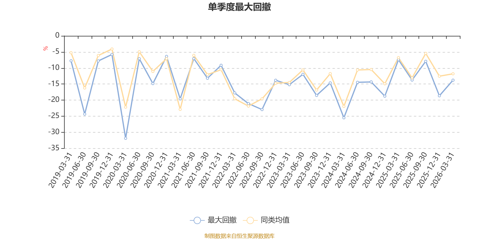 截至4月10日,基金近三年最大回撤为51.89%,同类可比基金排名30/32。单季度最大回撤出现在2020年一季度,为31.88%。