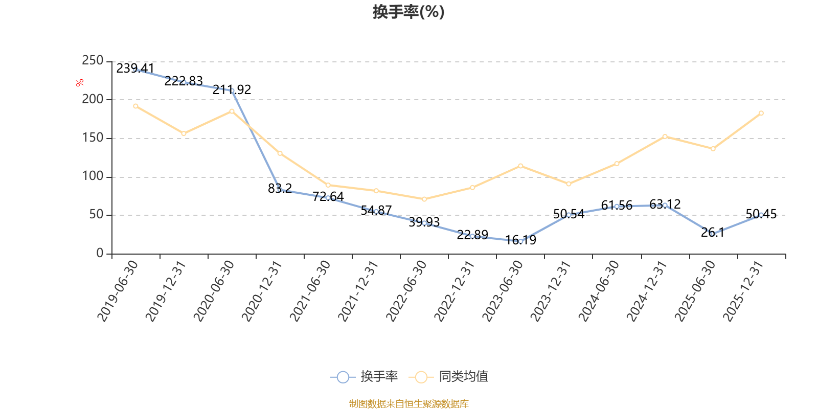 截至2025年12月31日,基金最近一年换手率约74.81%,持续5年低于同类均值。