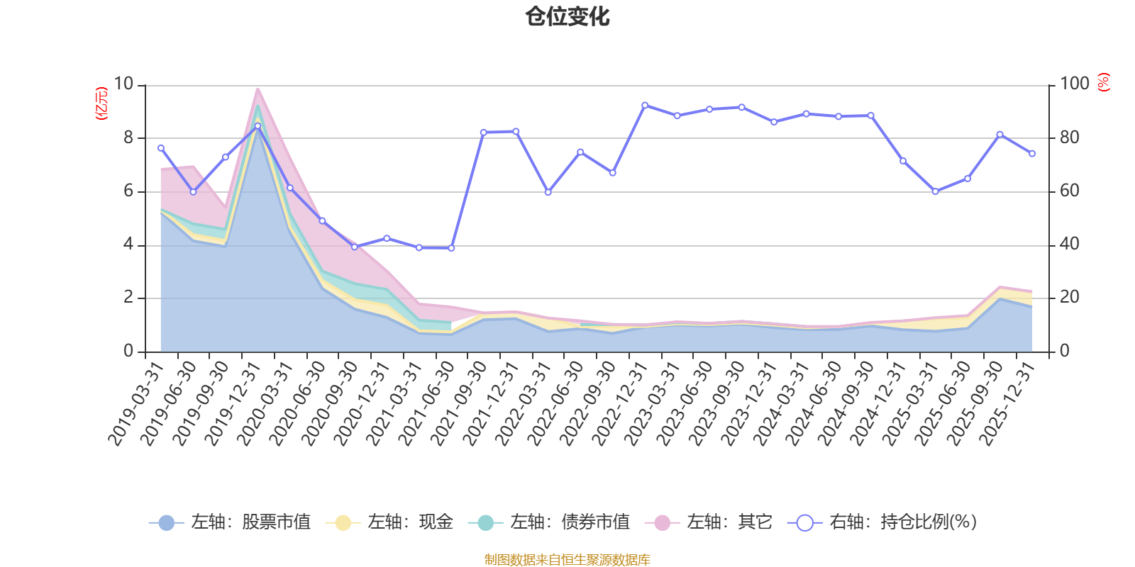据定期报告数据统计,近三年平均股票仓位为81.33%,同类平均为72.57%。2022年末基金达到92.43%的最高仓位,2021年上半年末最低,为38.9%。