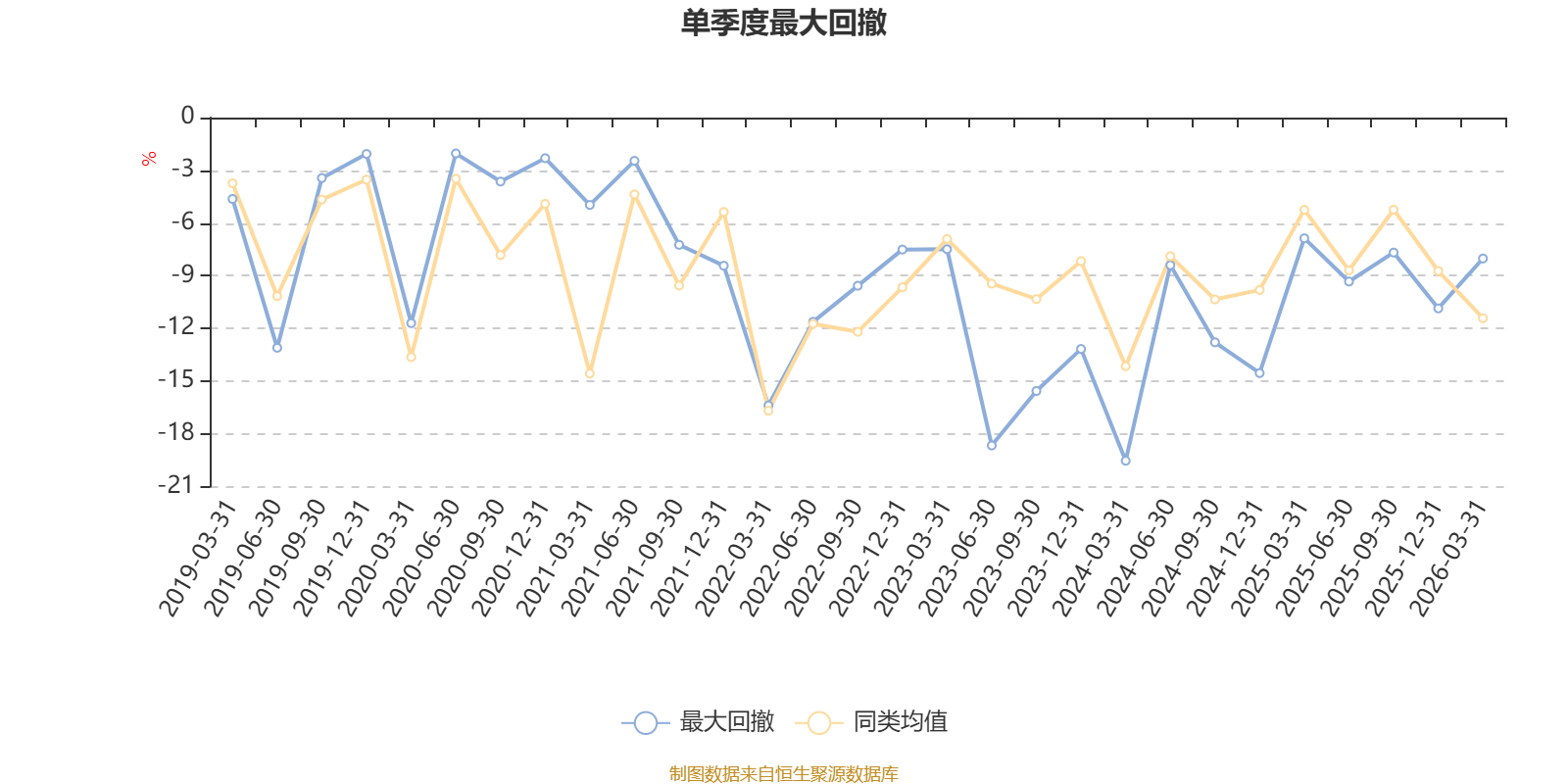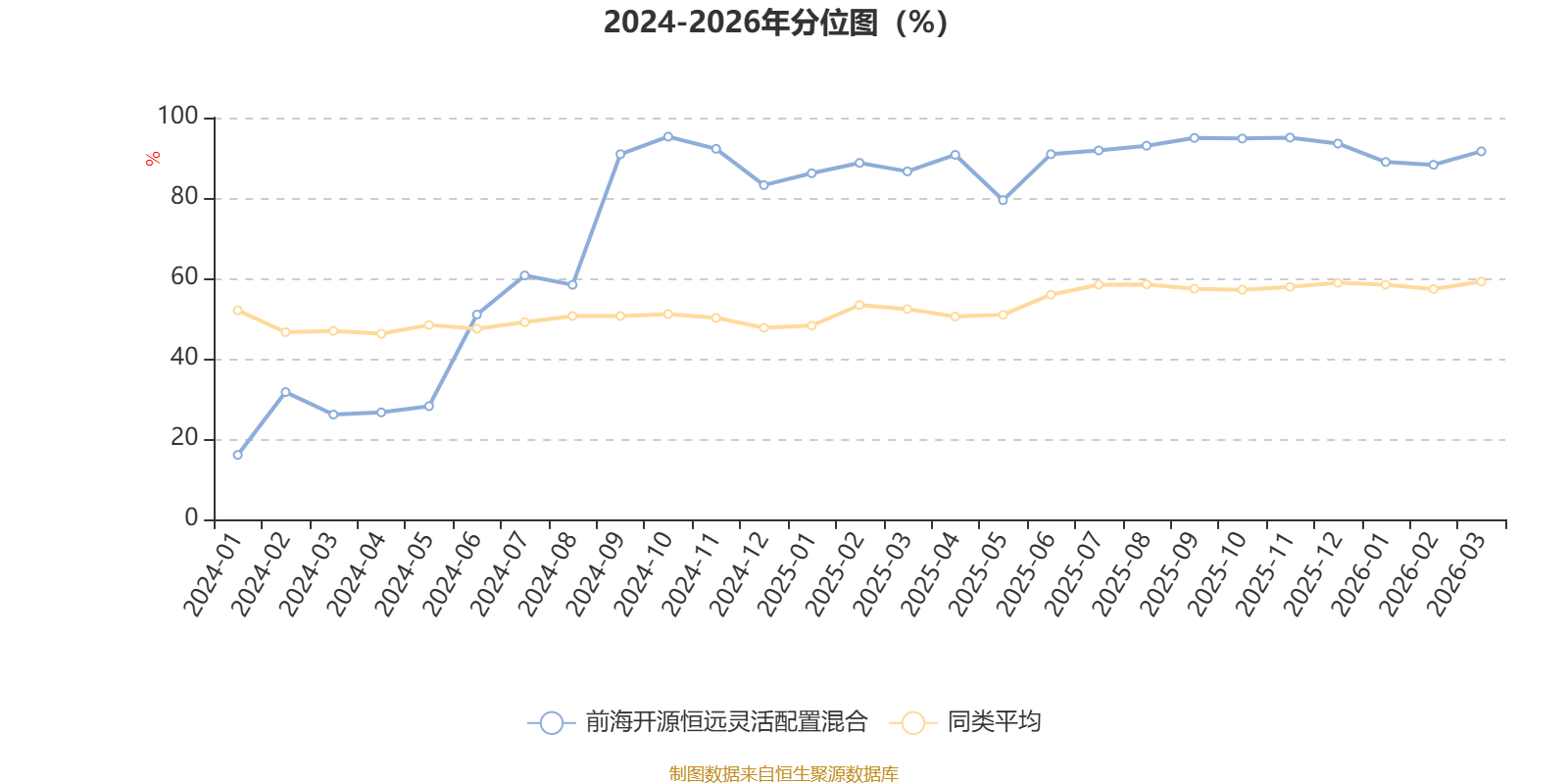 通过所选区间该基金净值增长率分位图,可以观察该基金与同类基金业绩比较情况。图为坐标原点到区间内某时点的净值增长率在同类基金中的分位数。