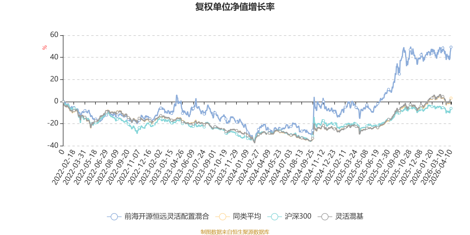 截至4月10日,前海开源恒远灵活配置混合近三个月复权单位净值增长率为3.19%,位于同类可比基金330/1287;近半年复权单位净值增长率为6.12%,位于同类可比基金511/1286;近一年复权单位净值增长率为65.88%,位于同类可比基金203/1286;近三年复权单位净值增长率为52.02%,位于同类可比基金156/1286。