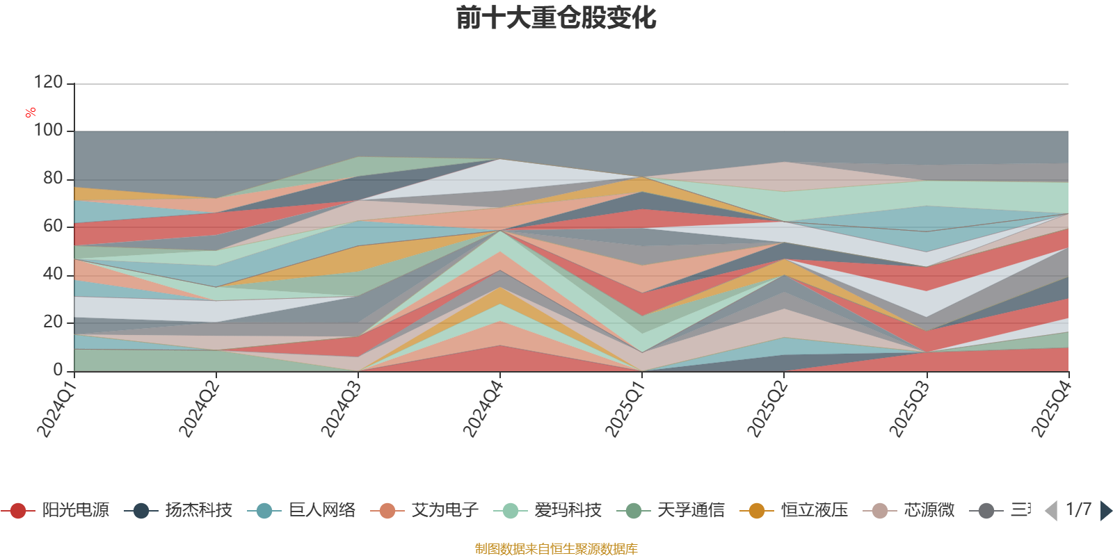 该基金持股集中度较高,近2年前十大重仓股集中度长期超过60%。截至2025年末,基金十大重仓股分别是中际旭创、寒武纪、阳光电源、中微公司、沪电股份、海光信息、震裕科技、天孚通信、飞龙股份、湖南裕能。