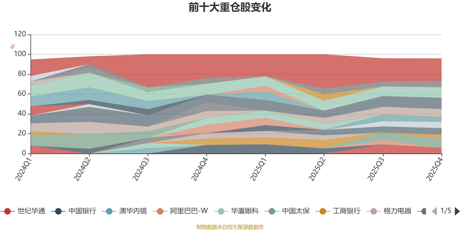 该基金持股集中度较高,近2年前十大重仓股集中度长期超过60%。截至2025年末,基金十大重仓股分别是腾讯控股、中国移动、中国太保、中国电信、阳光保险、中国平安、招商银行、世纪华通、英科医疗、工商银行。