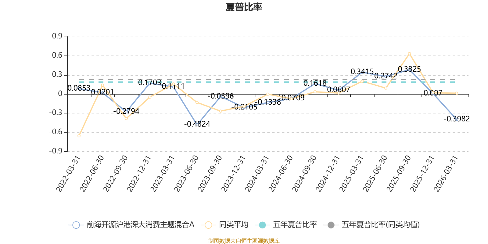 截至3月31日,基金近三年夏普比率为0.1442,位于同类可比基金1038/1274。