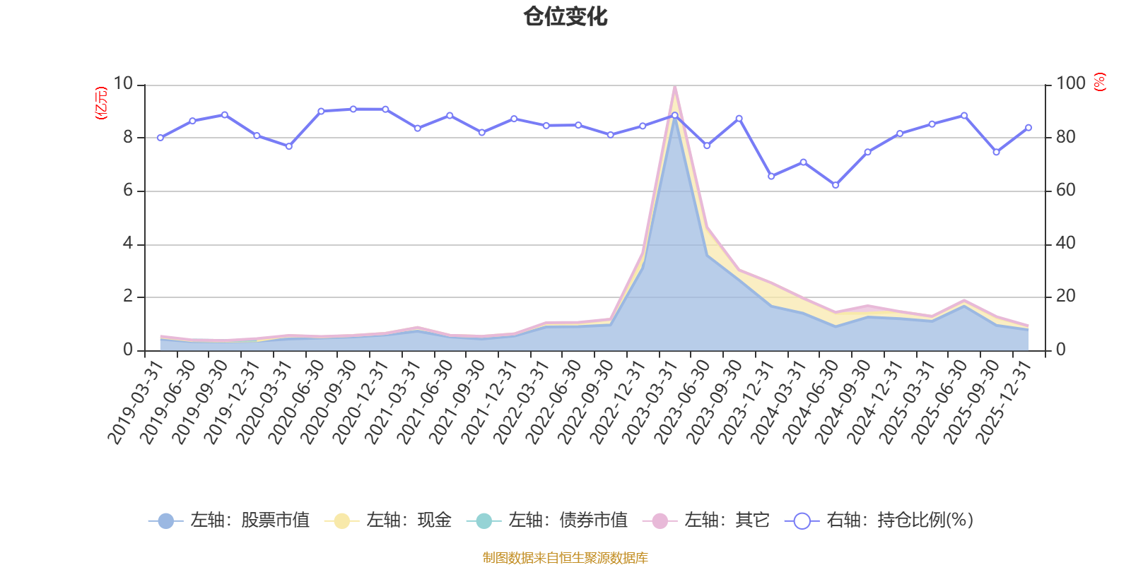 据定期报告数据统计,近三年平均股票仓位为78.36%,同类平均为72.57%。2020年三季度末基金达到90.85%的最高仓位,2024年上半年末最低,为62.28%。