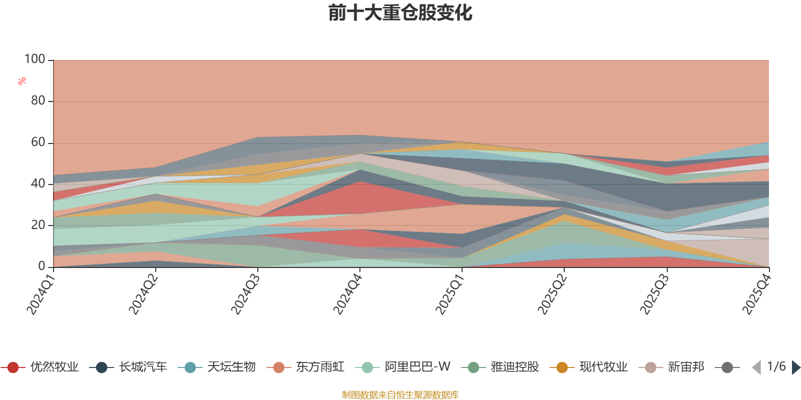 截至2025年末,基金十大重仓股分别是新宙邦、时代天使、天际股份、华盛锂电、天赐材料、多氟多、石大胜华、马应龙、思摩尔国际、东诚药业。