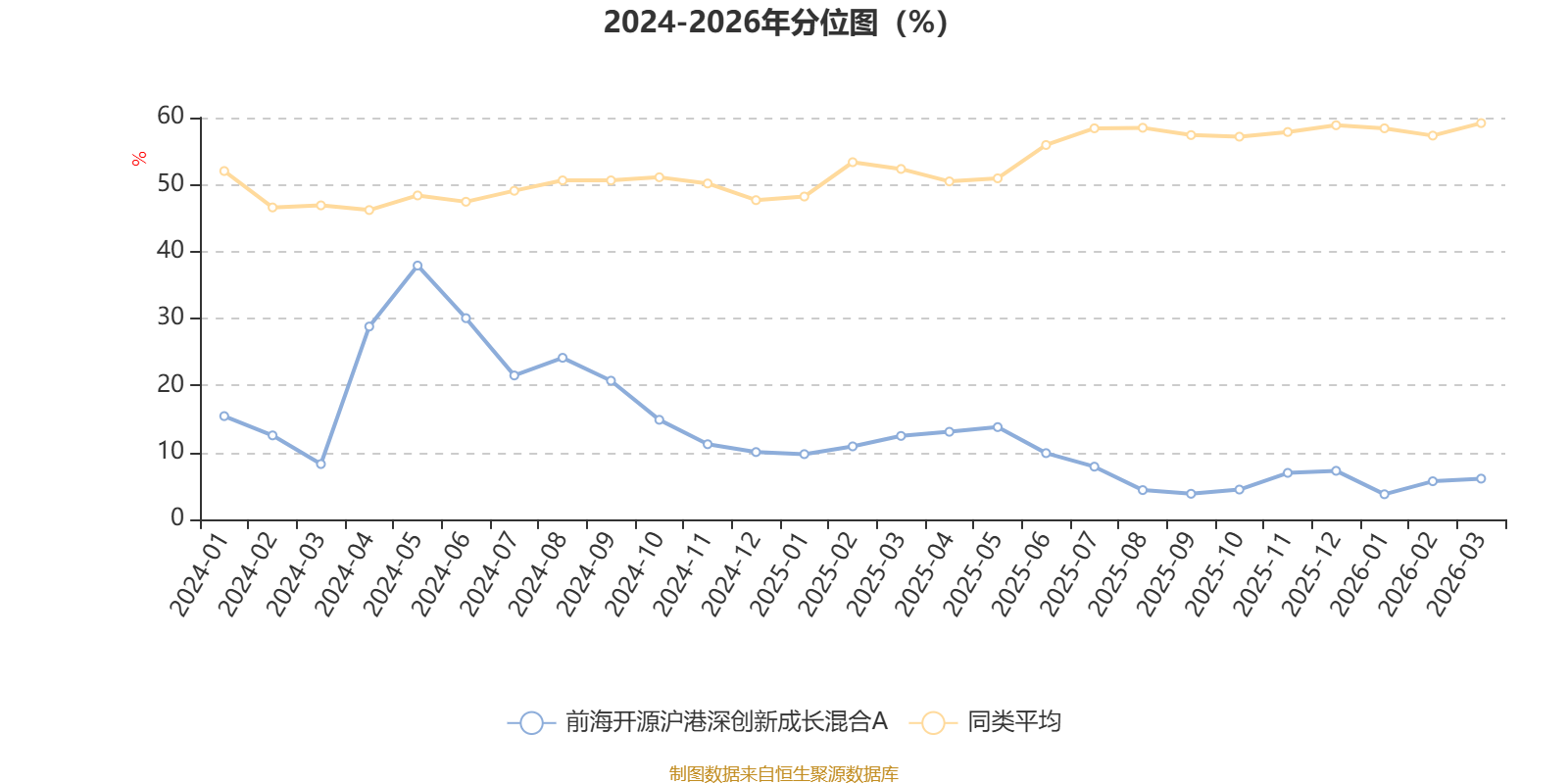 通过所选区间该基金净值增长率分位图,可以观察该基金与同类基金业绩比较情况。图为坐标原点到区间内某时点的净值增长率在同类基金中的分位数。