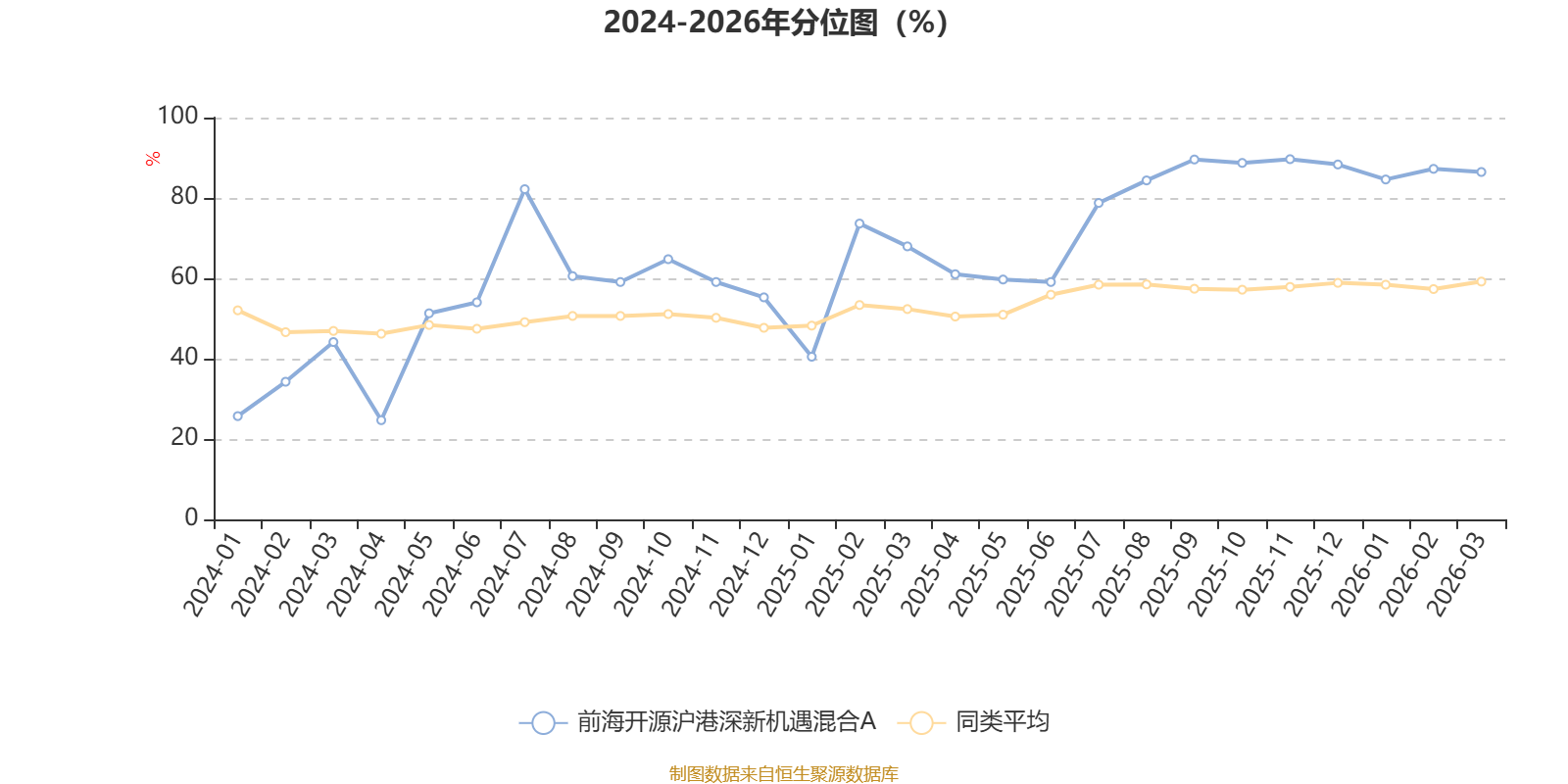 通过所选区间该基金净值增长率分位图,可以观察该基金与同类基金业绩比较情况。图为坐标原点到区间内某时点的净值增长率在同类基金中的分位数。