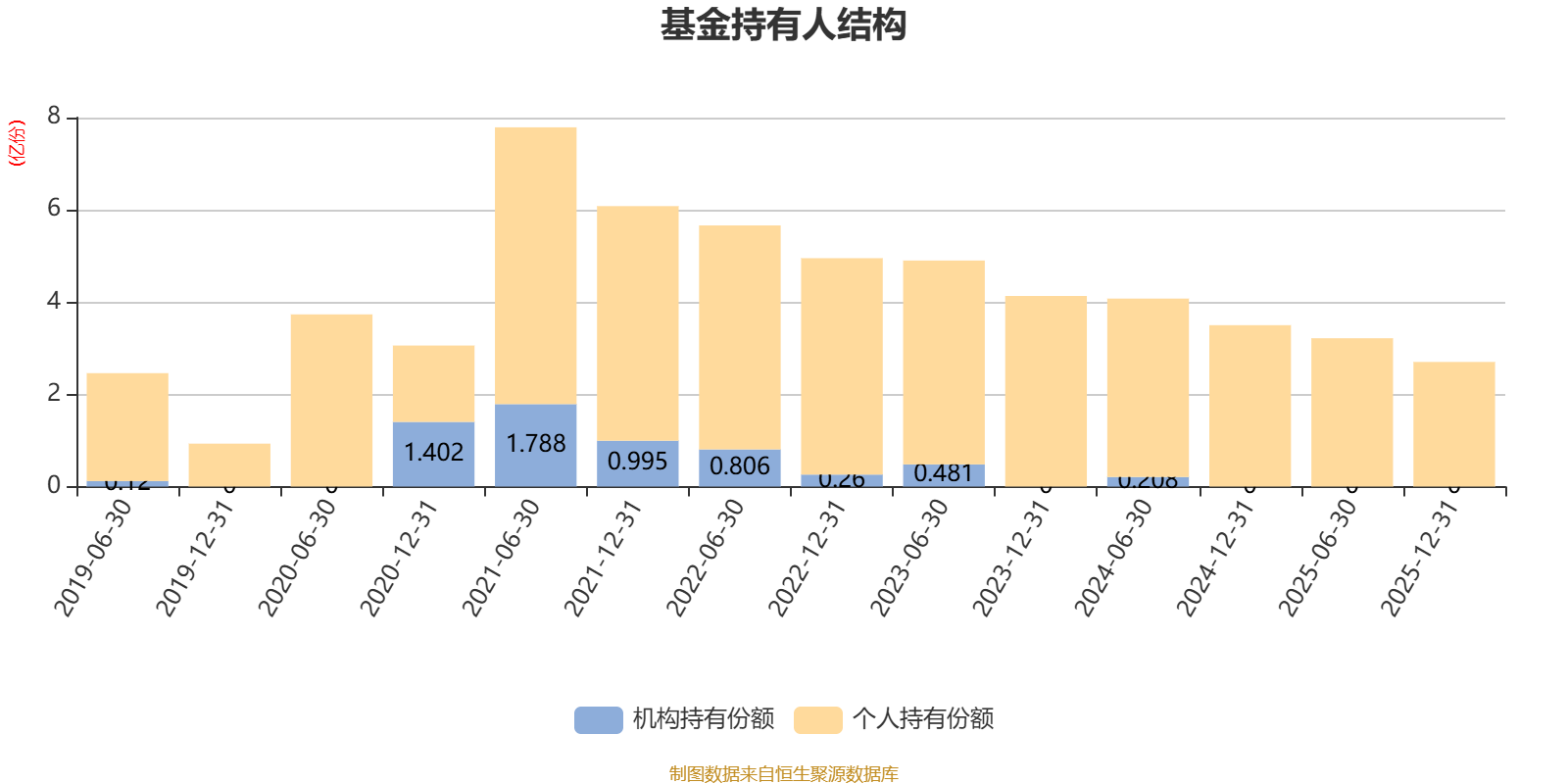 截至2025年12月31日,基金持有人共计3.88万户,合计持有2.7亿份。其中管理人员工持有72.27万份,占比0.27%,机构持有份额占比0.00%,个人投资者占比100.00%。