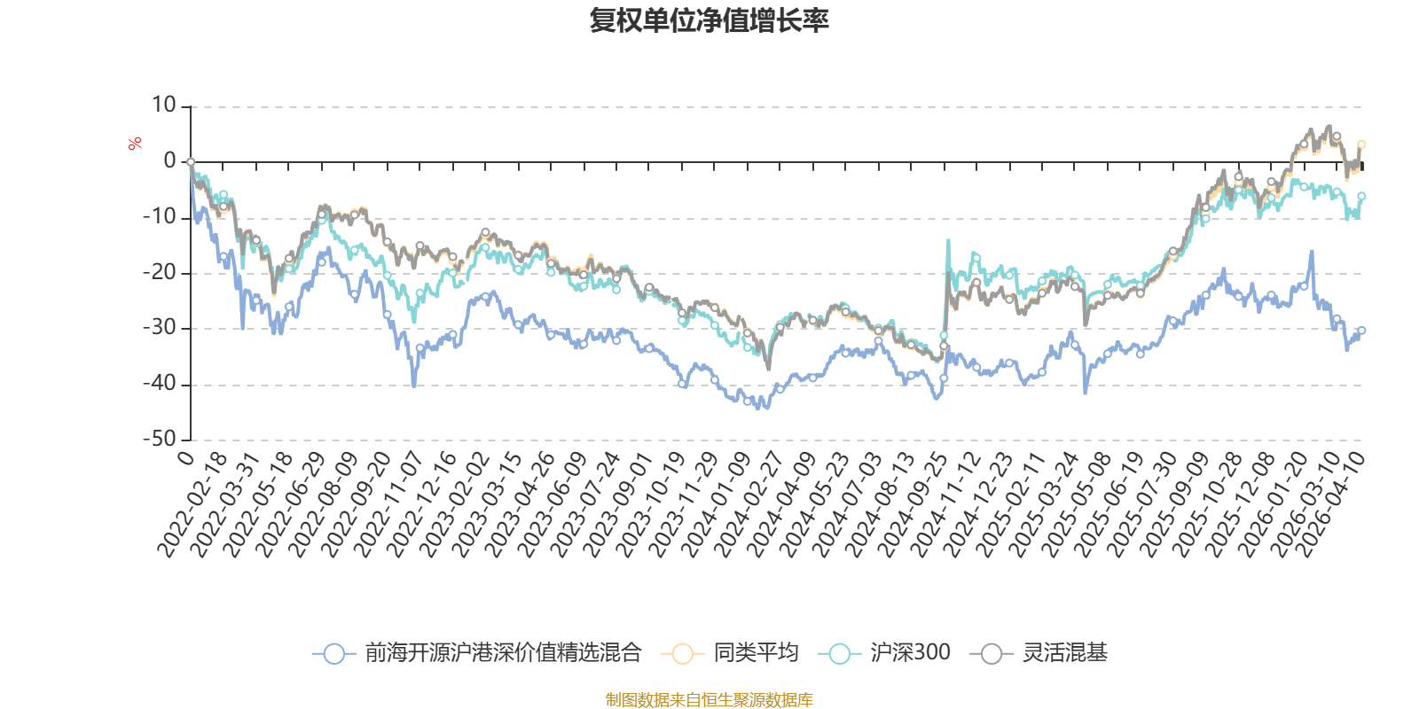 截至4月10日,前海开源沪港深价值精选混合近三个月复权单位净值增长率为-9.39%,位于同类可比基金1186/1287;近半年复权单位净值增长率为-11.27%,位于同类可比基金1238/1286;近一年复权单位净值增长率为13.37%,位于同类可比基金977/1286;近三年复权单位净值增长率为-1.54%,位于同类可比基金1019/1286。