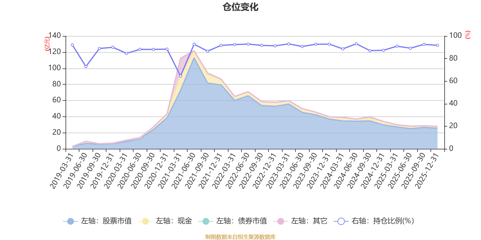 据定期报告数据统计,近三年平均股票仓位为90.83%,同类平均为72.57%。2024年上半年末基金达到93.11%的最高仓位,2021年一季度末最低,为64.49%。