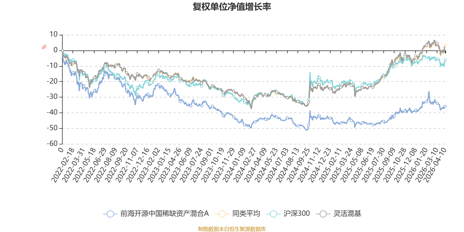 截至4月10日,前海开源中国稀缺资产混合A近三个月复权单位净值增长率为-3.33%,位于同类可比基金952/1287;近半年复权单位净值增长率为4.18%,位于同类可比基金614/1286;近一年复权单位净值增长率为21.60%,位于同类可比基金816/1286;近三年复权单位净值增长率为-10.93%,位于同类可比基金1127/1286。