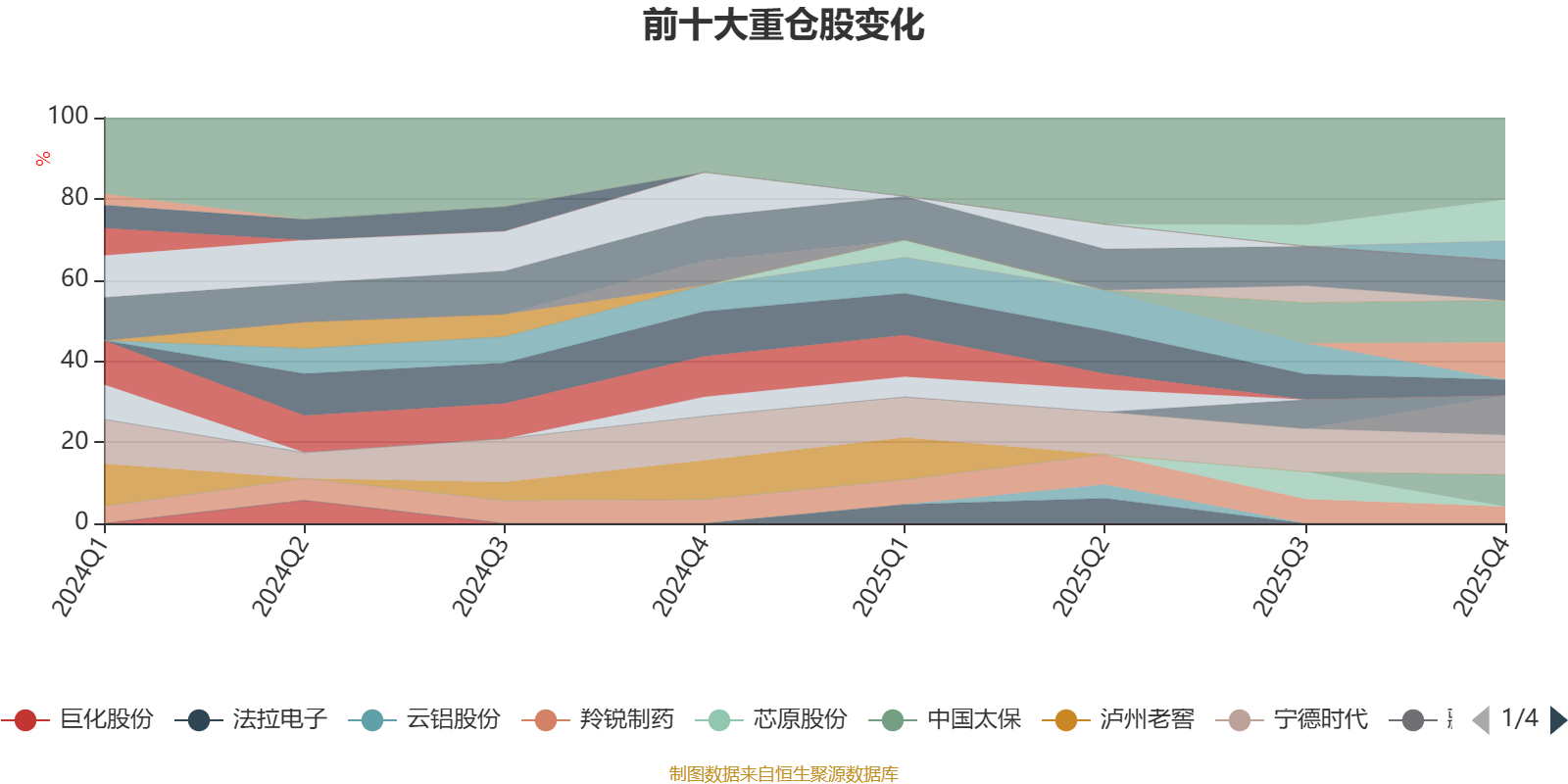 该基金持股集中度较高,近2年前十大重仓股集中度长期超过60%。截至2025年末,基金十大重仓股分别是中金黄金、紫金矿业、贵州茅台、藏格矿业、宁德时代、中国平安、中国太保、山东黄金、羚锐制药、中国海油。