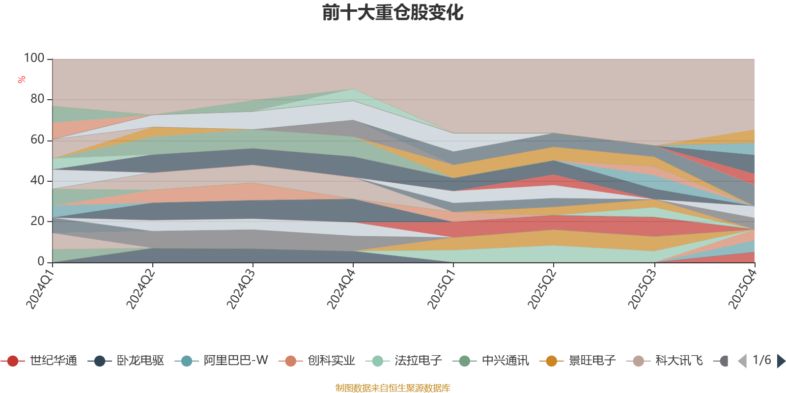该基金持股集中度较高。截至2025年末,基金十大重仓股分别是腾讯控股、中国移动、中芯国际、泡泡玛特、中国联通、阿里巴巴-W、极兔速递-W、美的集团、创科实业、世纪华通。