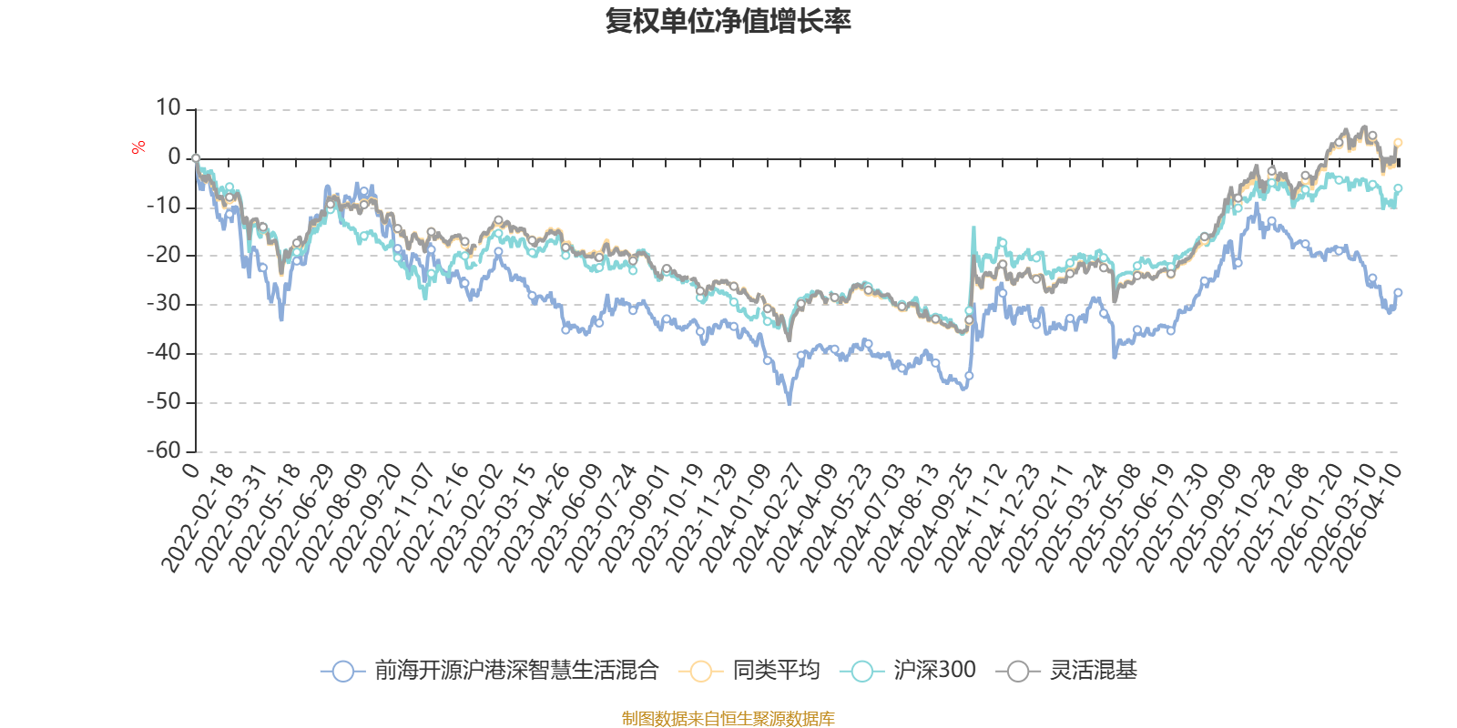 截至4月10日,前海开源沪港深智慧生活混合近三个月复权单位净值增长率为-10.63%,位于同类可比基金1207/1287;近半年复权单位净值增长率为-18.25%,位于同类可比基金1274/1286;近一年复权单位净值增长率为17.77%,位于同类可比基金885/1286;近三年复权单位净值增长率为2.50%,位于同类可比基金955/1286。