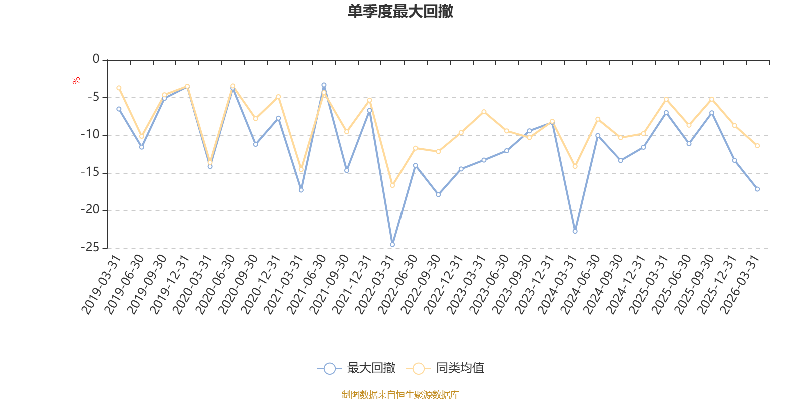 通过所选区间该基金净值增长率分位图,可以观察该基金与同类基金业绩比较情况。图为坐标原点到区间内某时点的净值增长率在同类基金中的分位数。