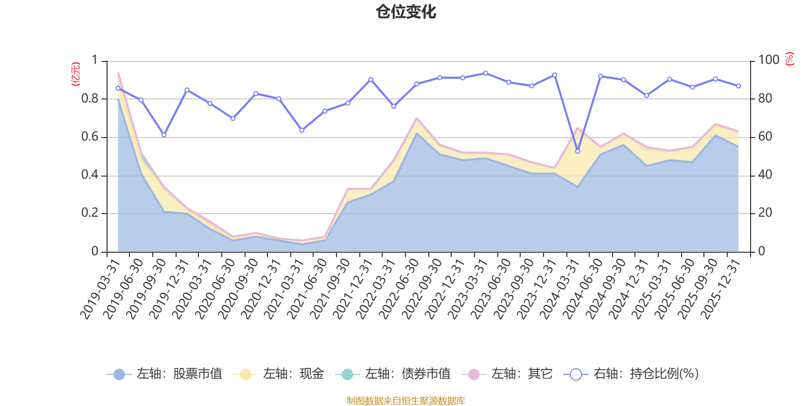 据定期报告数据统计,近三年平均股票仓位为86.07%,同类平均为72.57%。2023年一季度末基金达到93.56%的最高仓位,2024年一季度末最低,为52.74%。