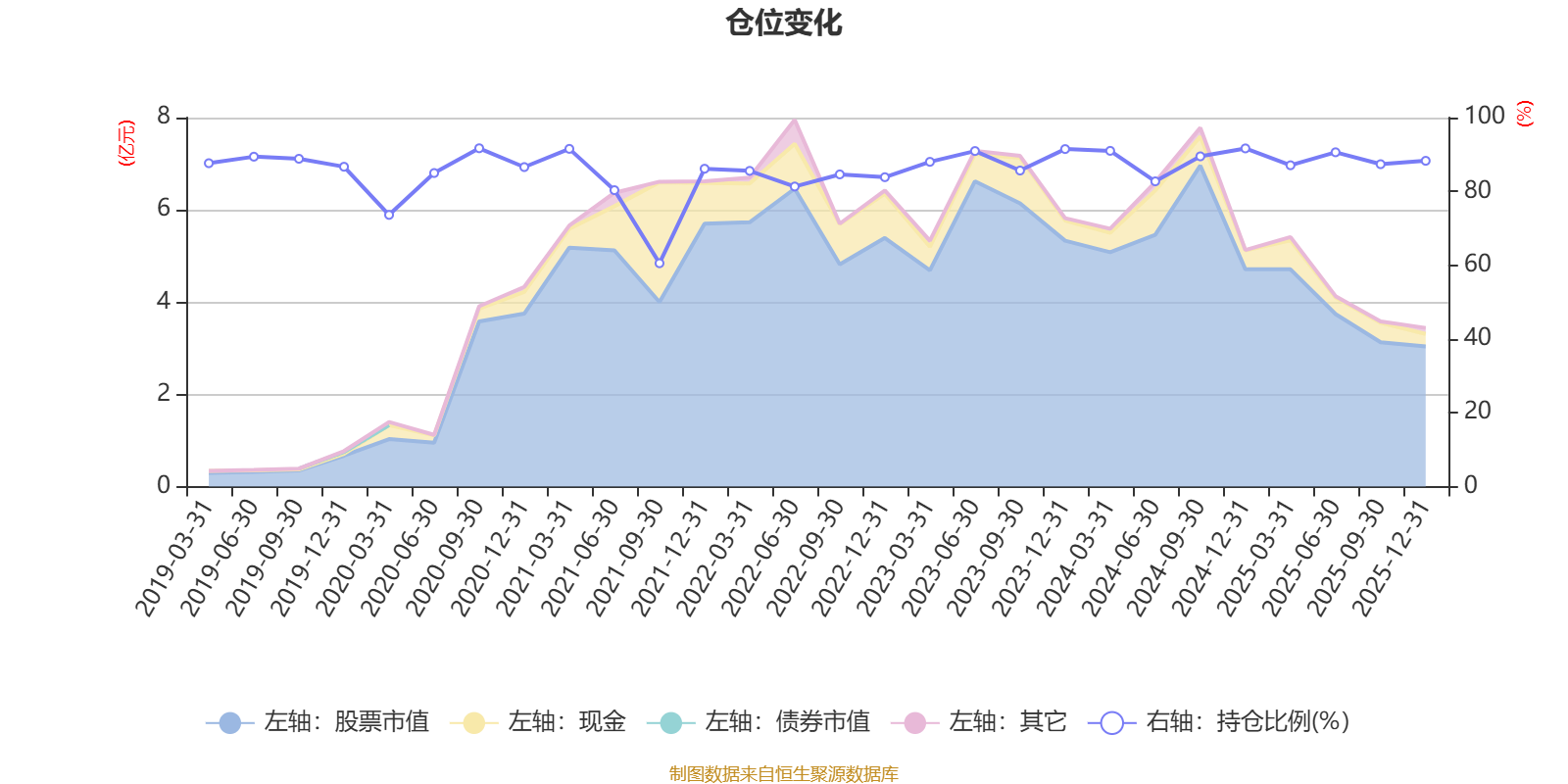 据定期报告数据统计,近三年平均股票仓位为88.69%,同类平均为72.57%。2020年三季度末基金达到91.69%的最高仓位,2021年三季度末最低,为60.53%。