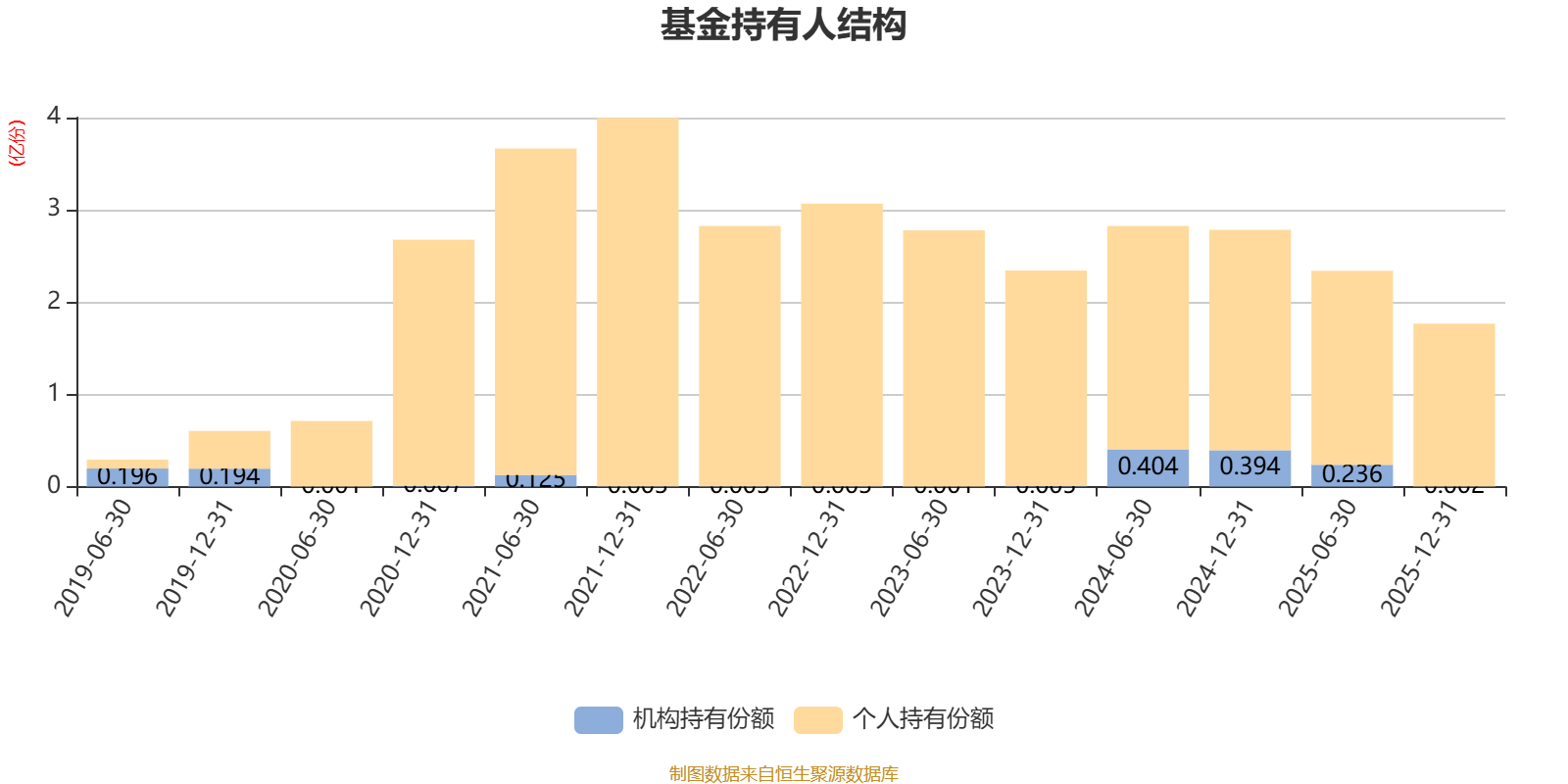 截至2025年12月31日,基金持有人共计5.55万户,合计持有1.77亿份。其中管理人员工持有1598.77份,机构持有份额占比0.12%,个人投资者占比99.88%。