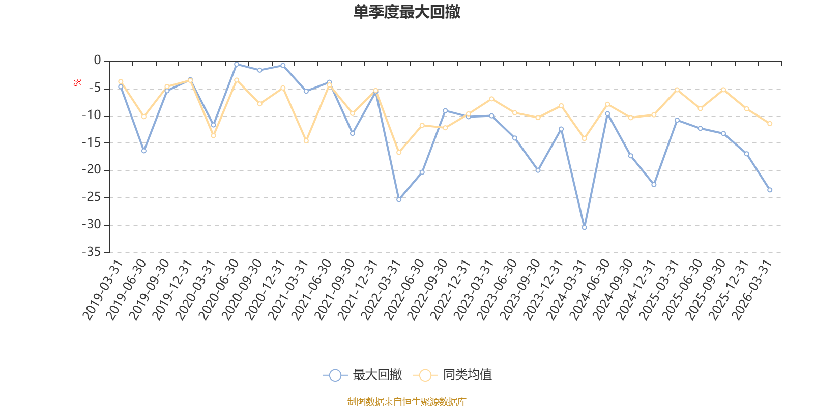 截至4月10日,基金近三年最大回撤为46.53%,同类可比基金排名1189/1273。单季度最大回撤出现在2024年一季度,为30.43%。