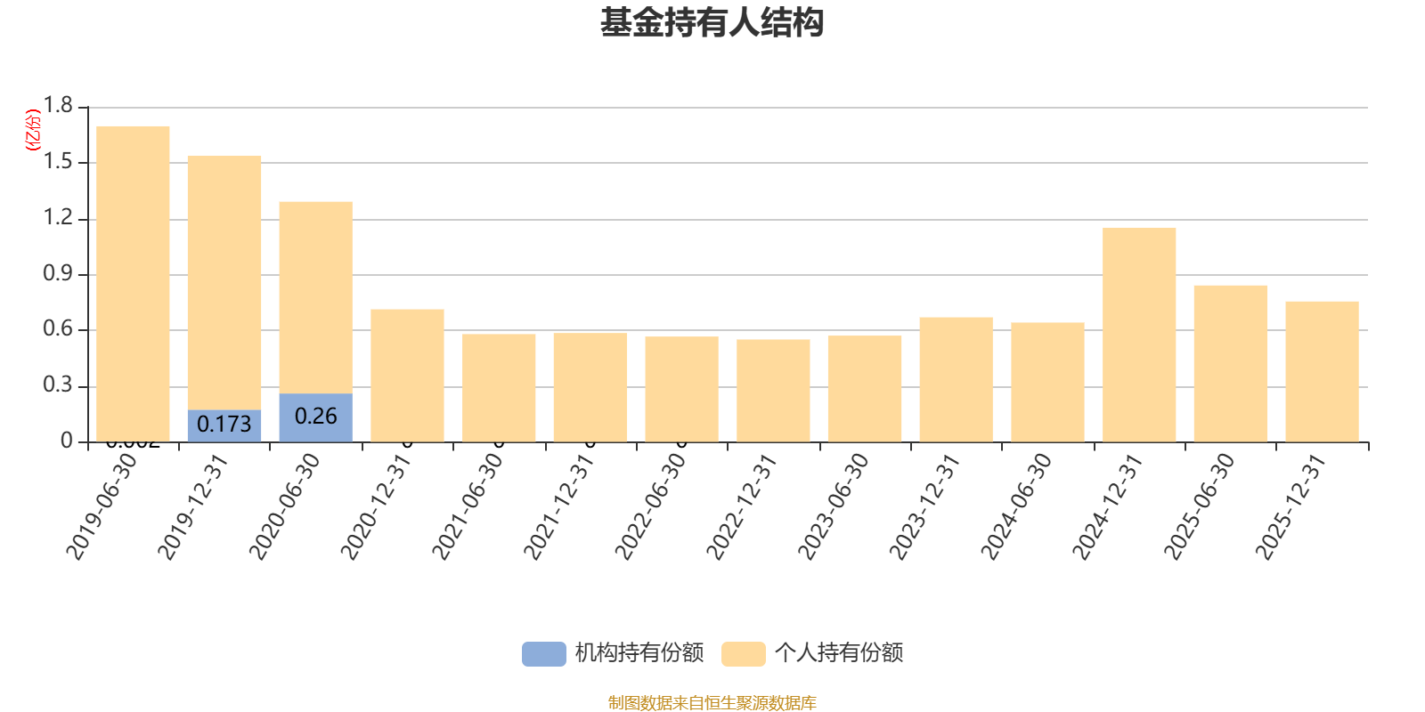 截至2025年12月31日,基金持有人共计6540户,合计持有7537.85万份。其中管理人员工持有27.83万份,占比0.37%,个人投资者占比100.00%。