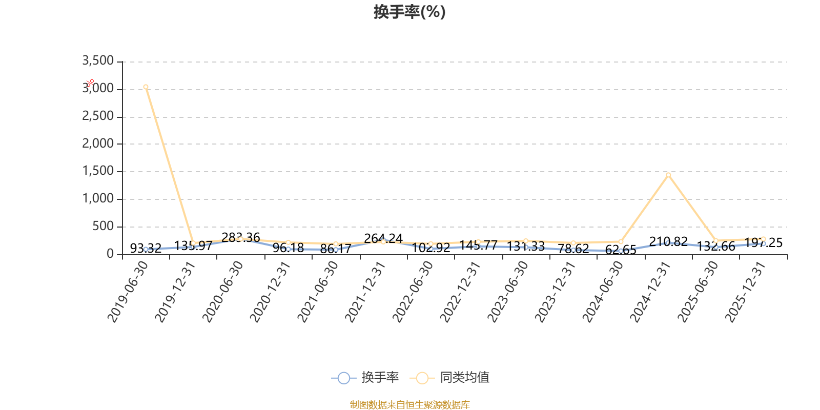 截至2025年12月31日,基金最近一年换手率约326.7%,持续4年低于同类均值。
