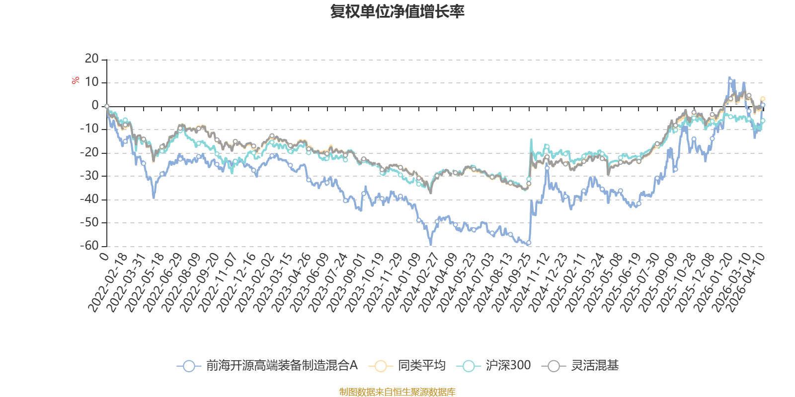 截至4月10日,前海开源高端装备制造混合A近三个月复权单位净值增长率为-2.62%,位于同类可比基金910/1287;近半年复权单位净值增长率为13.95%,位于同类可比基金233/1286;近一年复权单位净值增长率为63.74%,位于同类可比基金220/1286;近三年复权单位净值增长率为34.53%,位于同类可比基金320/1286。