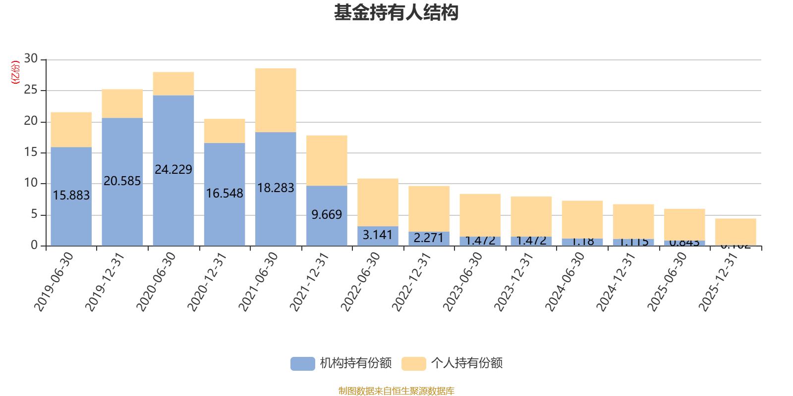 截至2025年12月31日,基金持有人共计5.41万户,合计持有4.39亿份。其中管理人员工持有113.72万份,占比0.26%,机构持有份额占比2.33%,个人投资者占比97.67%。