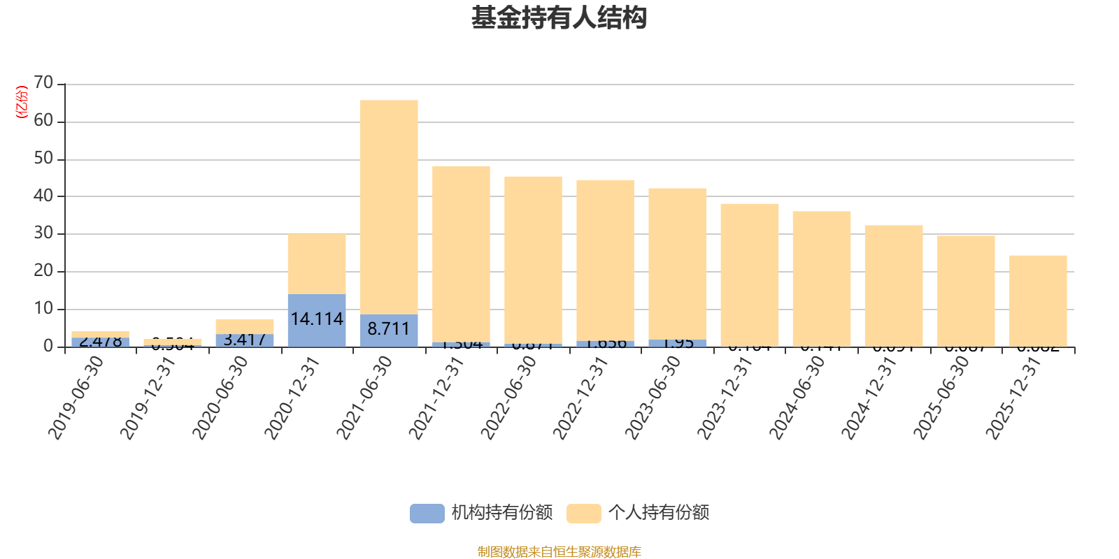 截至2025年12月31日,基金持有人共计21.45万户,合计持有24.31亿份。其中管理人员工持有85.17万份,占比0.04%,机构持有份额占比0.34%,个人投资者占比99.66%。
