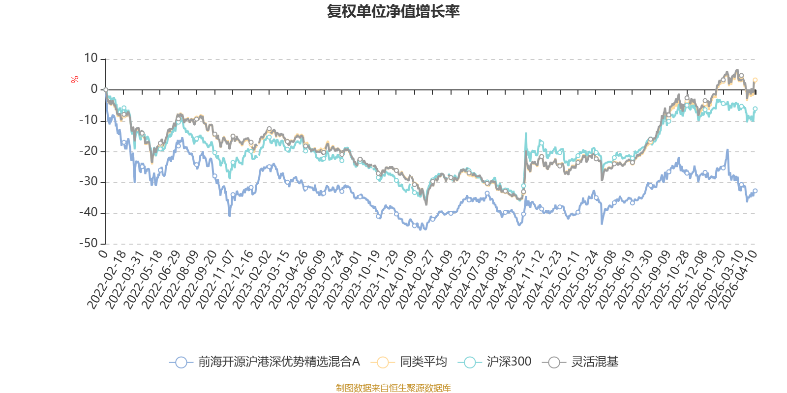 截至4月10日,前海开源沪港深优势精选混合A近三个月复权单位净值增长率为-9.12%,位于同类可比基金1182/1287;近半年复权单位净值增长率为-11.25%,位于同类可比基金1236/1286;近一年复权单位净值增长率为13.05%,位于同类可比基金982/1286;近三年复权单位净值增长率为-3.88%,位于同类可比基金1054/1286。
