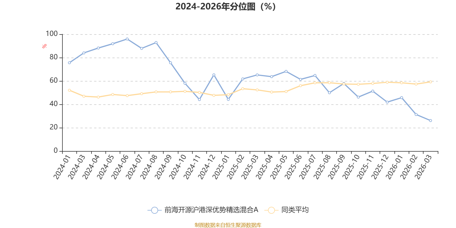 通过所选区间该基金净值增长率分位图,可以观察该基金与同类基金业绩比较情况。图为坐标原点到区间内某时点的净值增长率在同类基金中的分位数。