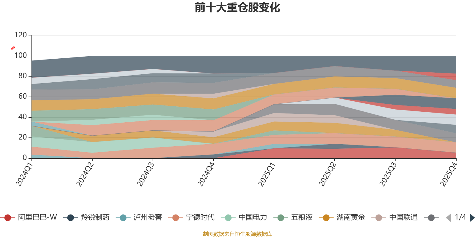 该基金持股集中度较高,近2年前十大重仓股集中度长期超过60%。截至2025年末,基金十大重仓股分别是中金黄金、腾讯控股、宁德时代、康方生物、小米集团-W、中国平安、贵州茅台、紫金矿业、西部水泥、阿里巴巴-W。