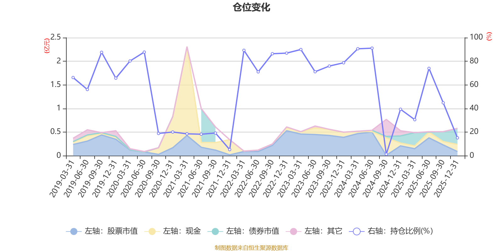 据定期报告数据统计,近三年平均股票仓位为58.57%,同类平均为72.57%。2024年上半年末基金达到91.13%的最高仓位,2024年三季度末最低,为1.31%。
