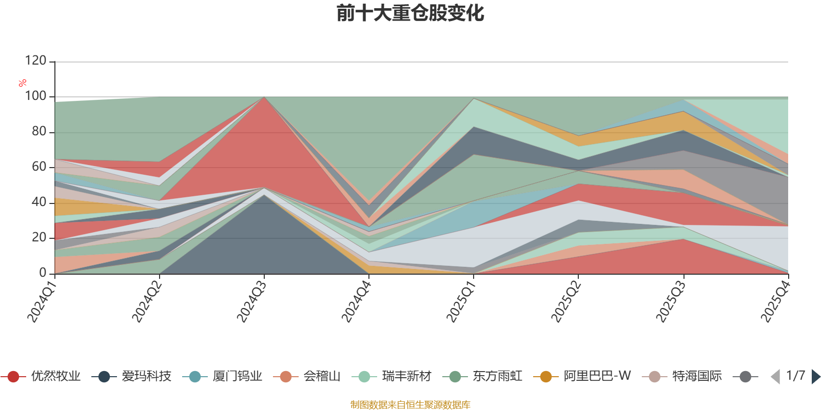 截至2025年末,基金十大重仓股分别是北部湾港、张裕A、新宙邦、峨眉山A、思摩尔国际、振华股份、厦门钨业、现代牧业、哔哩哔哩-W、优然牧业。