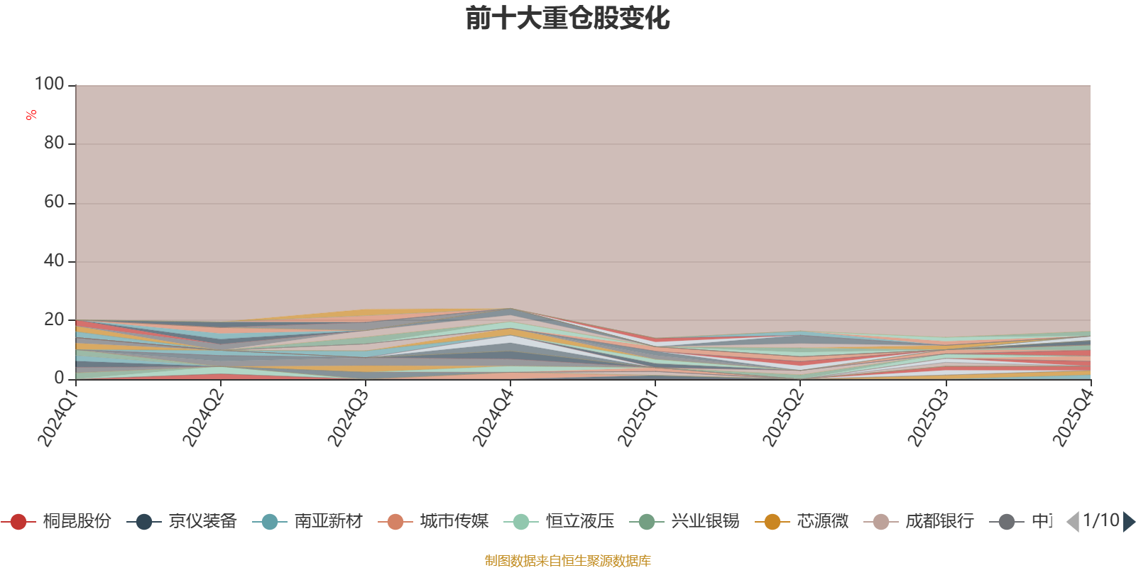 截至2025年末,基金十大重仓股分别是恒勃股份、铂力特、中国卫星、上海瀚讯、超捷股份、中国中免、航天电子、芯源微、三花智控、南亚新材。