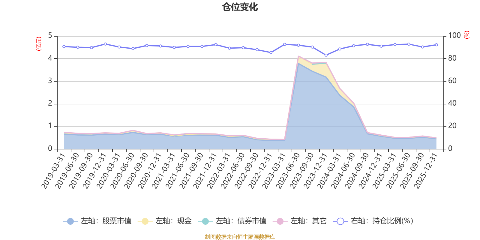 据定期报告数据统计,近三年平均股票仓位为90.75%,同类平均为72.57%。2019年末基金达到92.9%的最高仓位,2023年末最低,为83.04%。