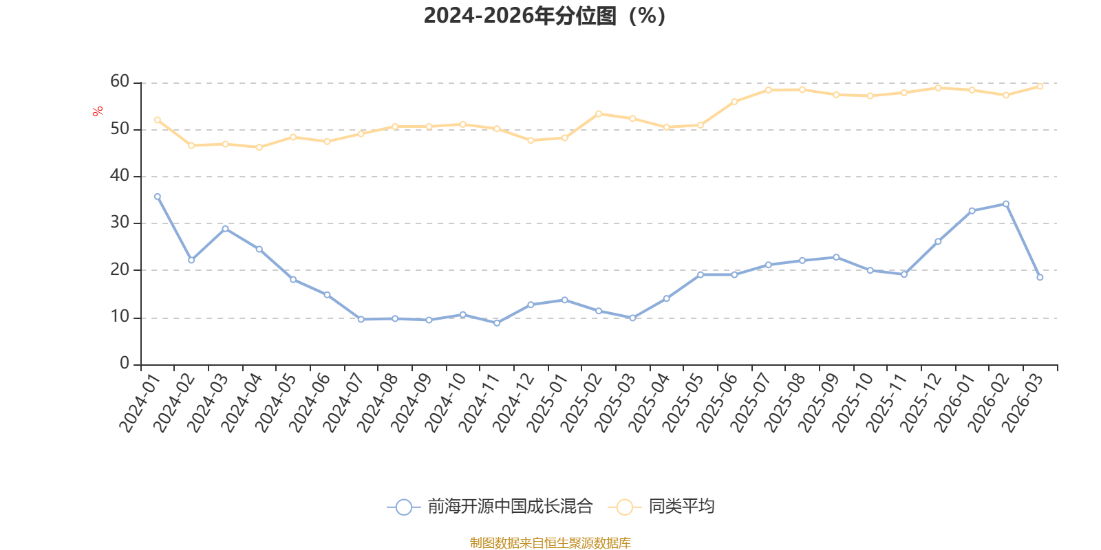 通过所选区间该基金净值增长率分位图,可以观察该基金与同类基金业绩比较情况。图为坐标原点到区间内某时点的净值增长率在同类基金中的分位数。