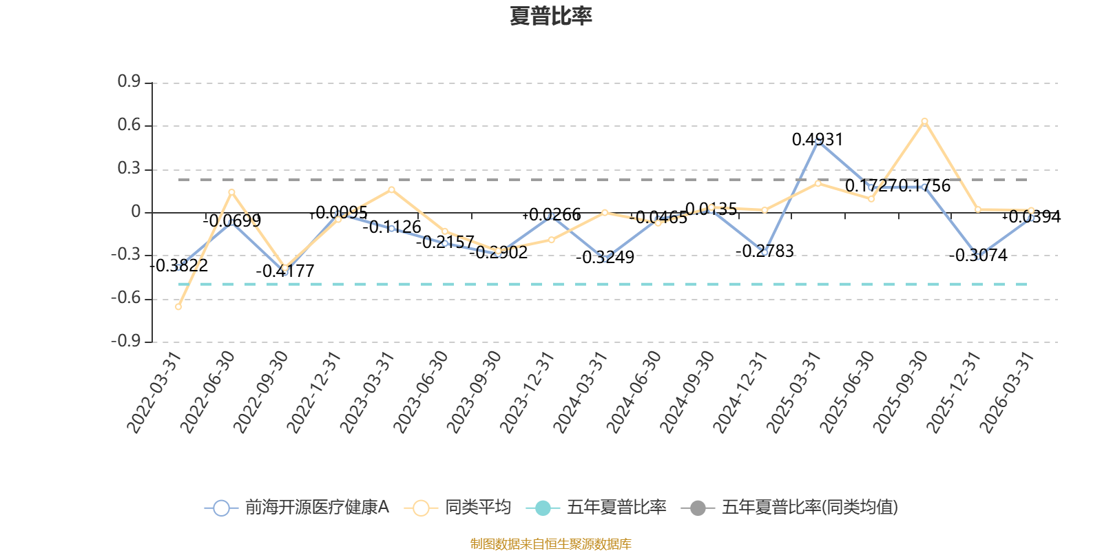 截至3月31日,基金近三年夏普比率为-0.0304,位于同类可比基金1151/1274。