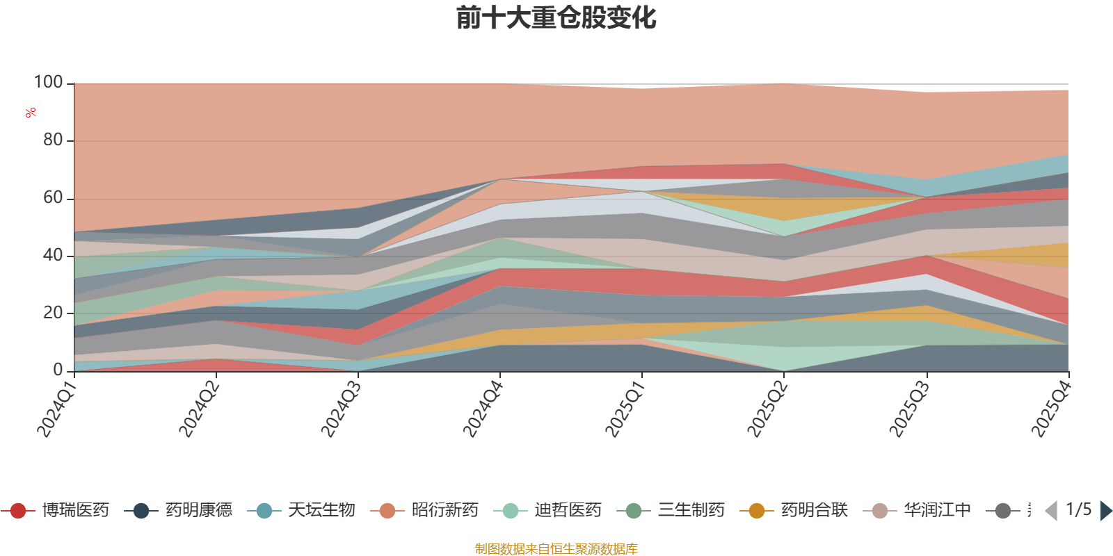 截至2025年末,基金十大重仓股分别是泰格医药、康方生物、药明康德、百济神州、映恩生物-B、信达生物、康辰药业、科伦博泰生物-B、药明生物、康龙化成。