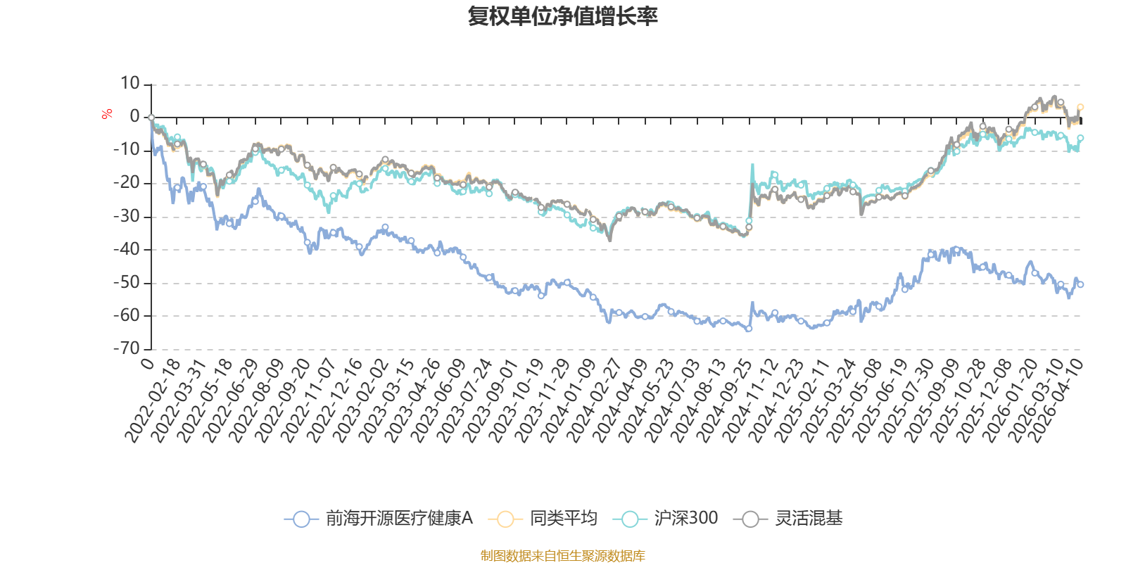 截至4月10日,前海开源医疗健康A近三个月复权单位净值增长率为-10.76%,位于同类可比基金1208/1287;近半年复权单位净值增长率为-12.42%,位于同类可比基金1249/1286;近一年复权单位净值增长率为22.69%,位于同类可比基金799/1286;近三年复权单位净值增长率为-17.61%,位于同类可比基金1201/1286。