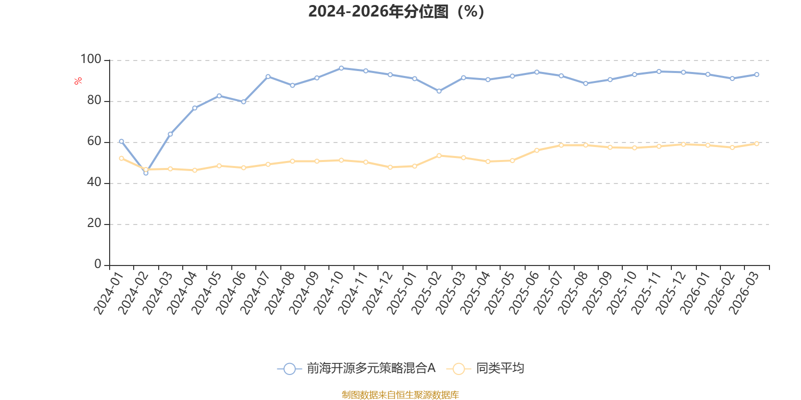 通过所选区间该基金净值增长率分位图,可以观察该基金与同类基金业绩比较情况。图为坐标原点到区间内某时点的净值增长率在同类基金中的分位数。