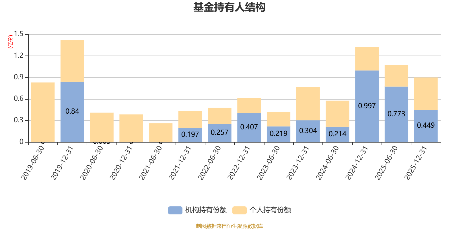 截至2025年12月31日,基金持有人共计1.21万户,合计持有9002.69万份。其中管理人员工持有42.59万份,占比0.47%,机构持有份额占比49.87%,个人投资者占比50.13%。
