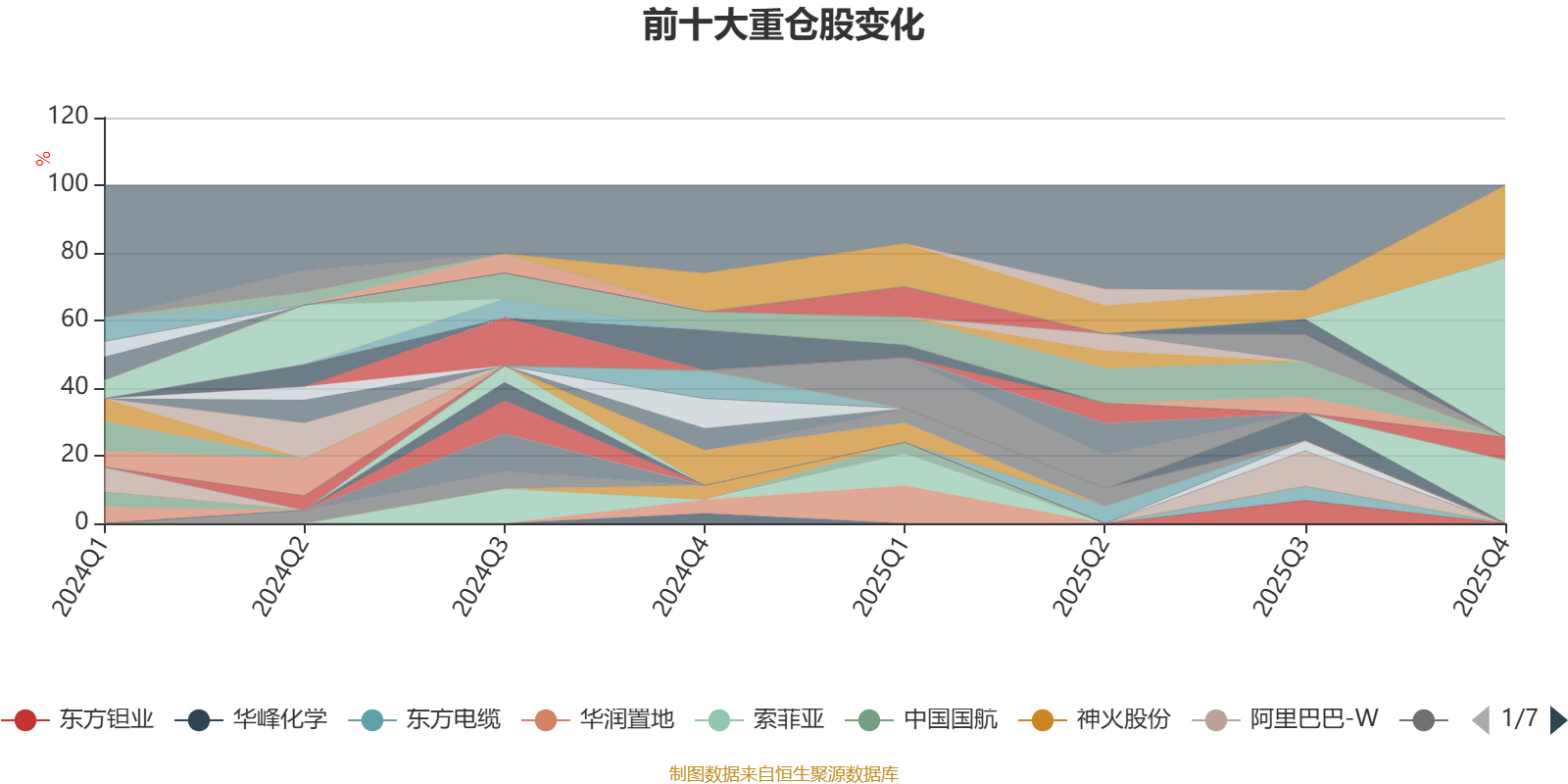 该基金持股集中度较高,近2年前十大重仓股集中度长期超过60%。截至2025年末,基金重仓股分别是上海银行、紫金矿业、吉祥航空、中金公司。
